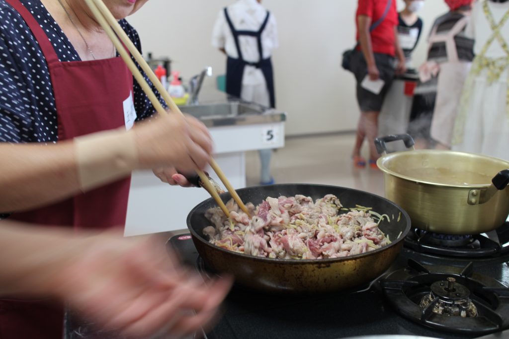 その場でメニューを考えて調理。また、みなさんといっしょに、