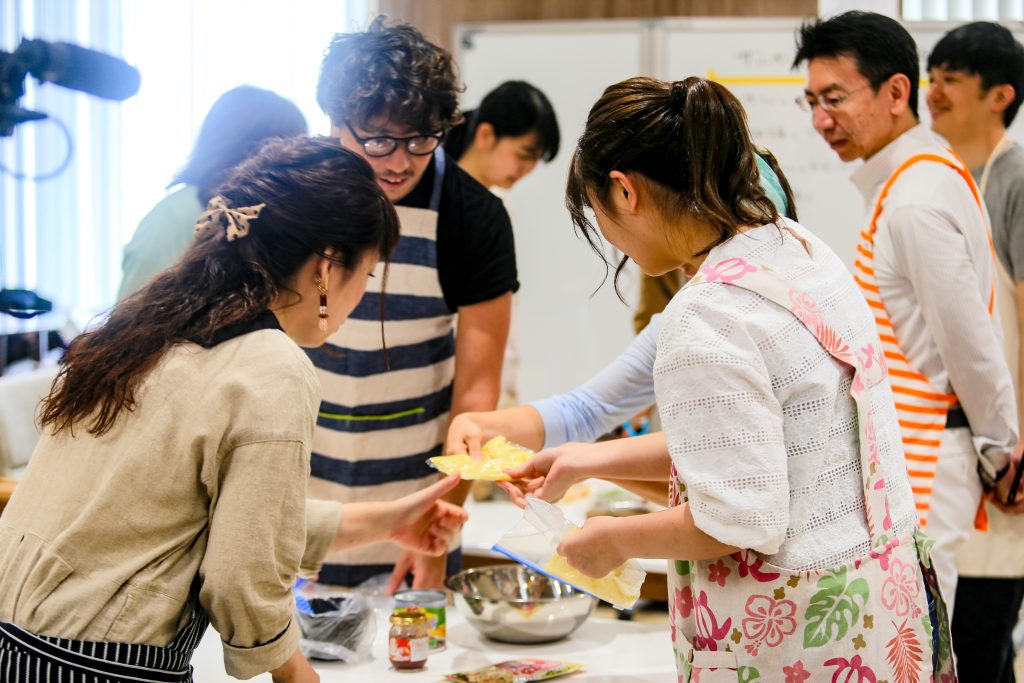 筆記用具・エプロン・スリッパ・手拭き用タオル・もてあましている食材1品※