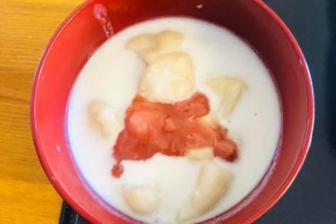 うどんの生地、日向夏、南京と小豆の缶詰、はちみつ