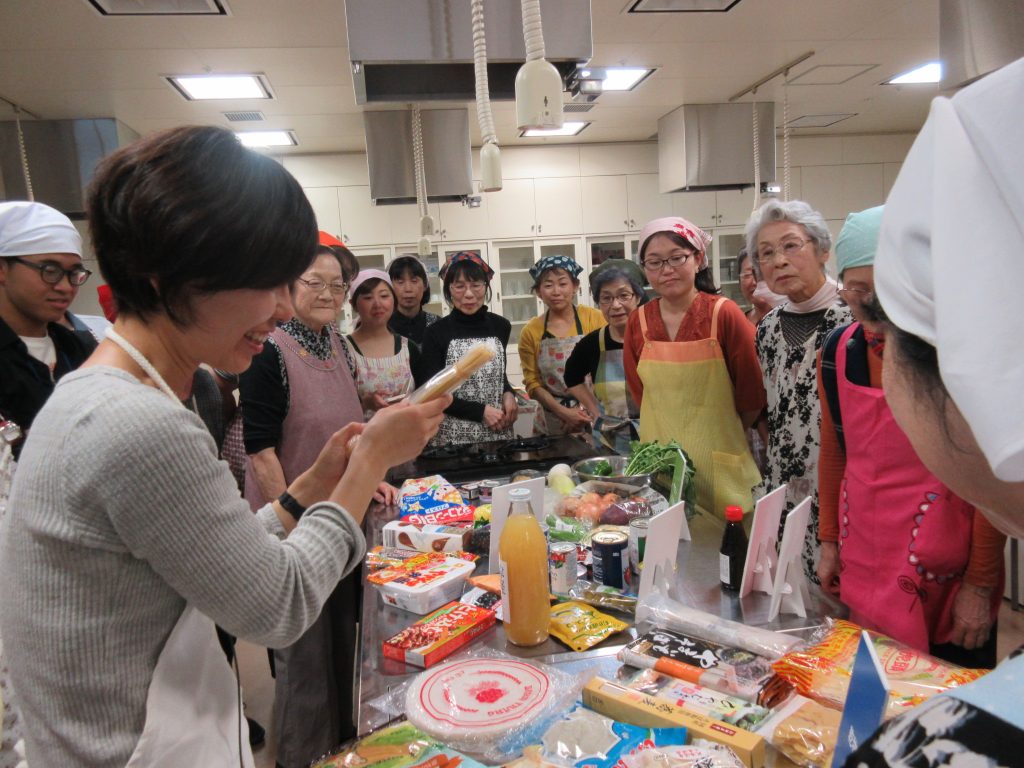 大根でパンケーキ!信じられない組み合わせ。でもこれがおいしくて、大人気のお料理でした。大根おろしとパン粉、そしてコーンフレークを混ぜてちょっと落ち着かせてからフライパンで焼きました。仕上げに、黒糖のおやつをお湯で溶かして黒蜜にしたものをたらり~。おいしいおいしい!レシピを聞いていった方もいました。