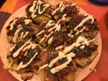 冷栗入り餅を揚げて自家製サルサをかけて新しい味にチャレンジしました。