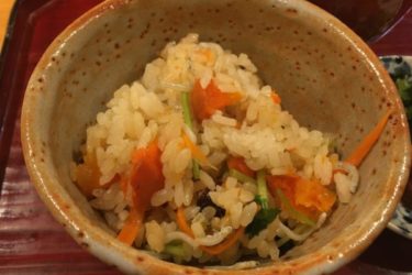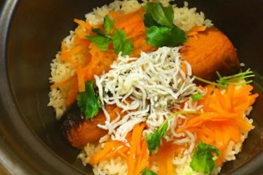 丸ごとにんじん釜だきご飯:丸焼きした人参と白だしでご飯と炊き込んでにんじんの甘味を引き出します。仕上げにきんぴら人参とじゃこを混ぜて、旨味もたっぷりな贅沢ご飯。見た目のインパクトも抜群で、大人気メニュー。