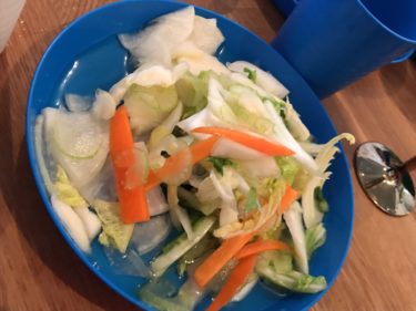 短時間でつかるように切ってそれぞれの野菜をつけもみした。