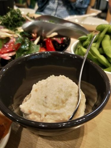 だしを取った後のお野菜達は、お野菜と豆腐と混ぜて、しろたまり、しろたまりもろみとみりんで味を整えてディップに。生野菜につけても、そのまま食べても美味しい。
