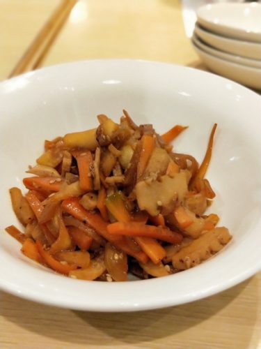 形が悪い人参達は、細く切ってキンピラに。みりんと醤油で味付け。濃厚な3年みりんとたまりで、コクとうま味がしっかり。